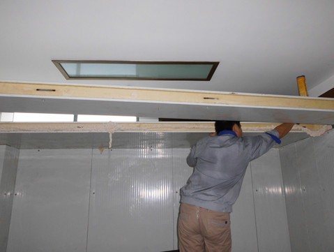 總結(jié):安裝冷庫(kù)板時(shí),嚴(yán)格按照?qǐng)D紙施工,彈線要準(zhǔn),直。分清庫(kù)板凸凹面的走向。(不分凸凹面的話可能會(huì)導(dǎo)致門(mén)無(wú)法安裝)每塊板在拼裝前一定打滿發(fā)泡劑。發(fā)泡劑不能少打。每個(gè)偏心鉤用內(nèi)六角固定,安裝時(shí)確保每個(gè)連接口牢固,縫隙不能過(guò)大,保持水平,不能出現(xiàn)歪斜。