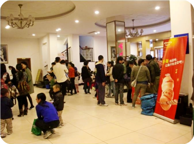 售票處的醒目的養(yǎng)樂多易拉寶
